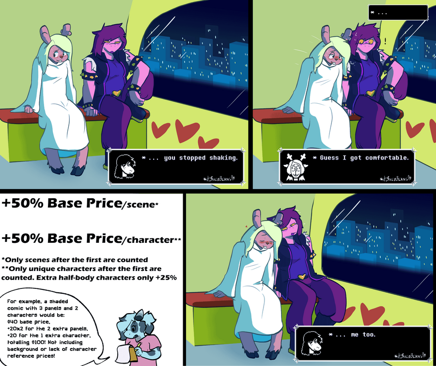 This is where you'll find info about my commissions, including prices and examples! Go ahead and read through, and contact me once you're ready!